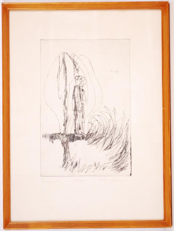 Beschreibung: Csohány Kálmán (1925-1980): Tengernél. Rézkarc, papír, jelzett, üvegezett keretben 48×36 cm