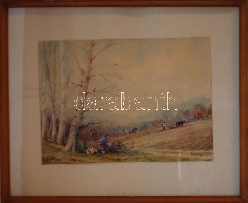 Jozefzky jelzéssel: Aratás, akvarell, papír, övegezett keret, 46×56 cm https://www.darabanth.com/de/183-Fernauktion/183.0/Andere-Sammelgebiete/Gemalde-und-Grafiken~5200001/Jozefzky-jelzessel-Aratas-akvarell-papir-ovegezett-keret-46C39756-cm~II581568