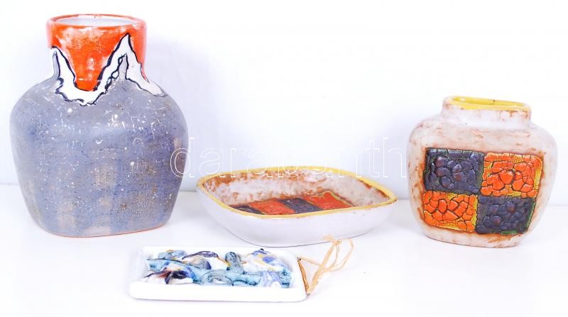 Beschreibung: Iparművészeti Vállalatos kerámia tétel: váza, tálka, falikép, jelzettek, hibátlanok, m:4-13 cm