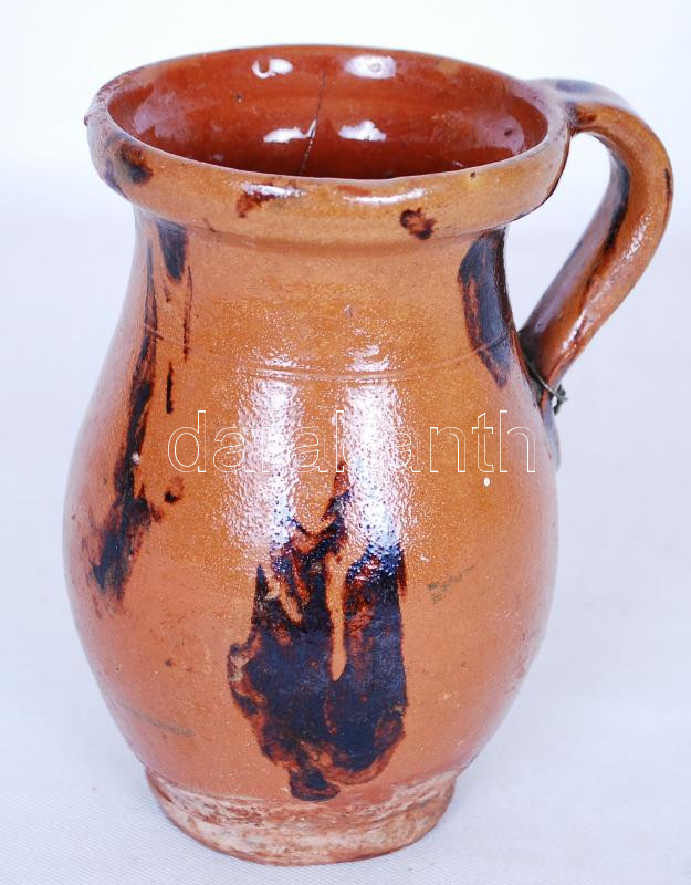 Beschreibung: Régi, mázas, népművészeti kerámiacsupor /
