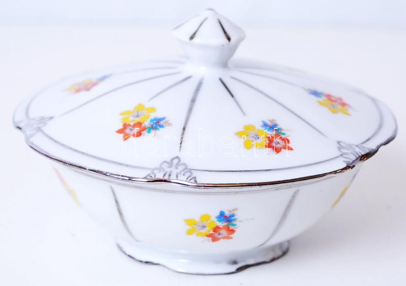 Beschreibung: Drasche virágos bonbonier, jelzett, hibátlan, matricás, d:14 cm, m:8 cm / Drasche porcelain candy dish