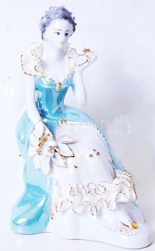Jelzett üldögélő hölgy, apró hibákkal, kézzel festett, m:16 cm https://www.darabanth.com/de/183-Fernauktion/183.0/Andere-Sammelgebiete/Porzellan~5200006/Jelzett-uldogelo-holgy-apro-hibakkal-kezzel-festett-m16-cm~II656141