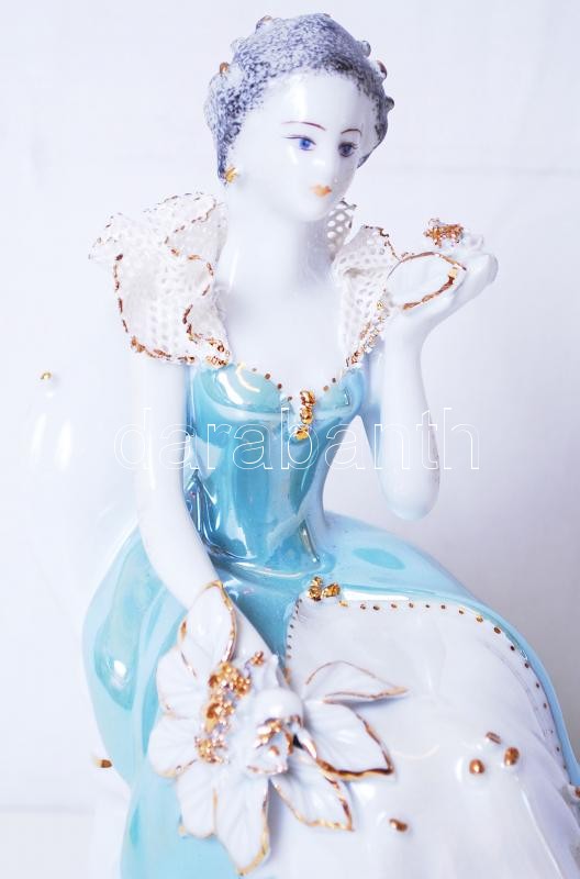 Beschreibung: Jelzett üldögélő hölgy, apró hibákkal, kézzel festett, m:16 cm
