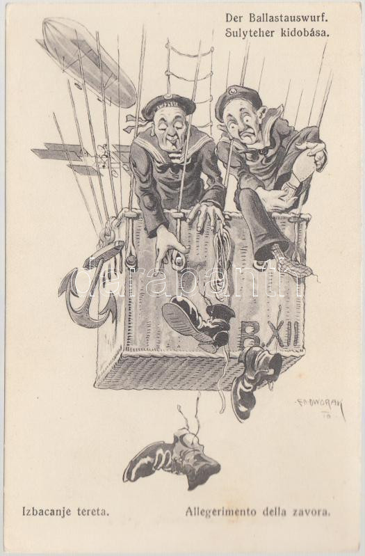 Military airship, humour s: Dworak https://www.darabanth.com/de/183-Fernauktion/183.0/Ansichtskarten/Fesselballons~5200090/Military-airship-humour-s-Dworak~II659339