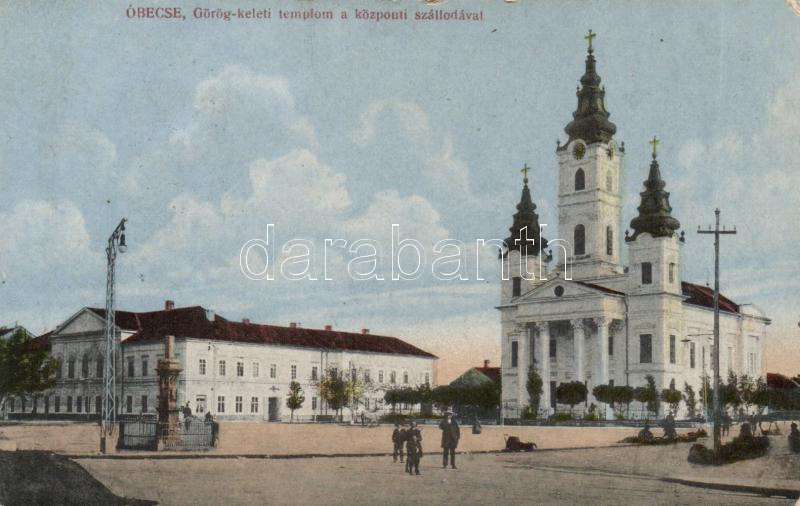 Óbecse orthodox church, central hotel (EK) https://www.darabanth.com/de/183-Fernauktion/183.0/Ansichtskarten/Vojvodina~3400010/Obecse-orthodox-church-central-hotel-EK~II657556