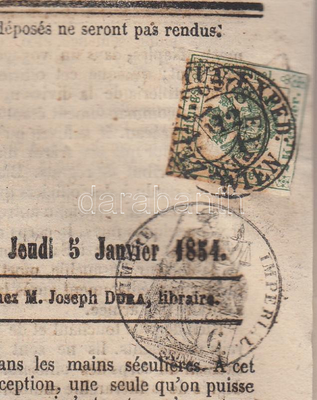 1854 L'Univers francia újság francia szignettával és 2kr osztrák hírla... https://www.darabanth.com/de/183-Fernauktion/183.0/Philatelie/Osterreich~70/1854-LUnivers-francia-ujsag-francia-szignettaval-es-2kr-osztrak-hirlapilletek-belyeggel~II654937