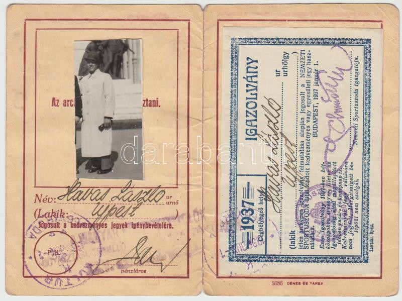 1937 Havas László újpesti footbalista fényképes uszodai belépője https://www.darabanth.com/de/184-Fernauktion/184.0/Andere-Sammelgebiete/Dokument~3000014/1937-Havas-Laszlo-ujpesti-footbalista-fenykepes-uszodai-belepoje~II667853