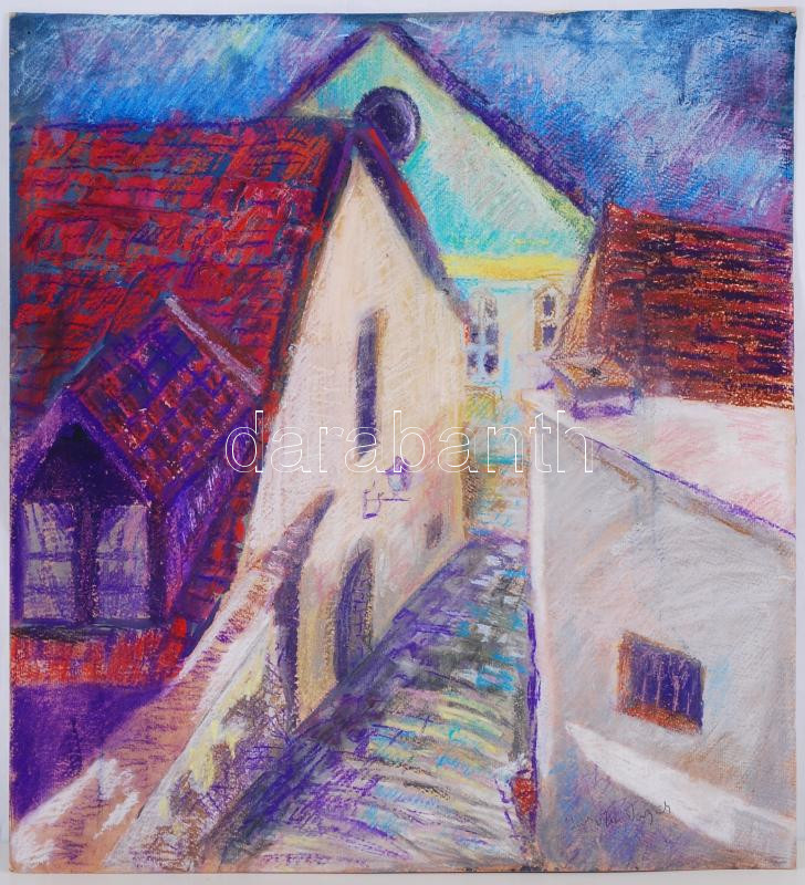 Beschreibung: Ilosvai Varga jelzéssel: Házak. Pasztell, karton, 46×43 cm
