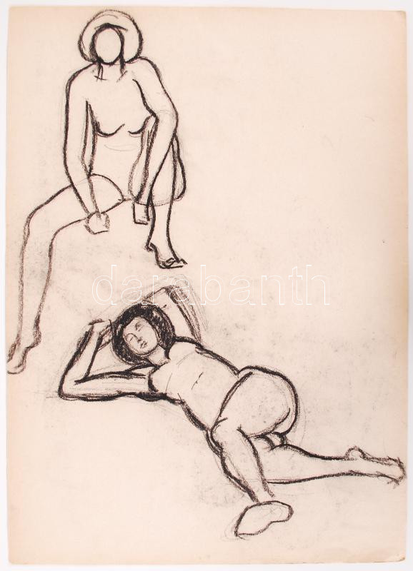 Jelzés nélkül: Aktvázlatok. Szén, papír, 43x30,5cm https://www.darabanth.com/de/184-Fernauktion/184.0/Andere-Sammelgebiete/Gemalde-und-Grafiken~3000021/Jelzes-nelkul-Aktvazlatok-Szen-papir-43x30-5cm~II670286
