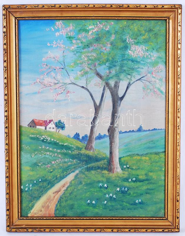 Jelzés nélkül: Ház a domb tetőn. Olaj, vászon, keretben, 45×35 cm https://www.darabanth.com/de/184-Fernauktion/184.0/Andere-Sammelgebiete/Gemalde-und-Grafiken~3000021/Jelzes-nelkul-Haz-a-domb-teton-Olaj-vaszon-keretben-45C39735-cm~II642225