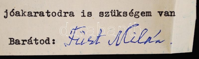 Beschreibung: 1958 Magánlevél Füst Milán saját kezű aláírásával