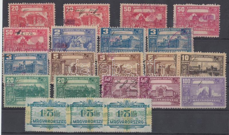 Beschreibung: 21 db konzuli illetékbélyeg jobbakkal