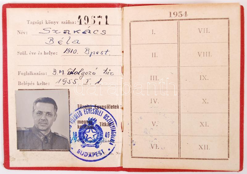 1956 Tűzoltó egyesületi igazolvány, tagsági bélyegekkel https://www.darabanth.com/de/185-Fernauktion/185.0/Andere-Sammelgebiete/Dokument~3000016/1956-Tuzolto-egyesuleti-igazolvany-tagsagi-belyegekkel~II672789