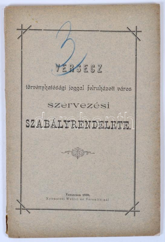 1899 Versecz törvényhatósági joggal felruházott város szervezési szabá... https://www.darabanth.com/de/185-Fernauktion/185.0/Andere-Sammelgebiete/Drucksachen~3000018/1899-Versecz-torvenyhatosagi-joggal-felruhazott-varos-szervezesi-szabalyrendelete-Wettel-e~II673242