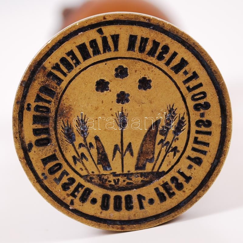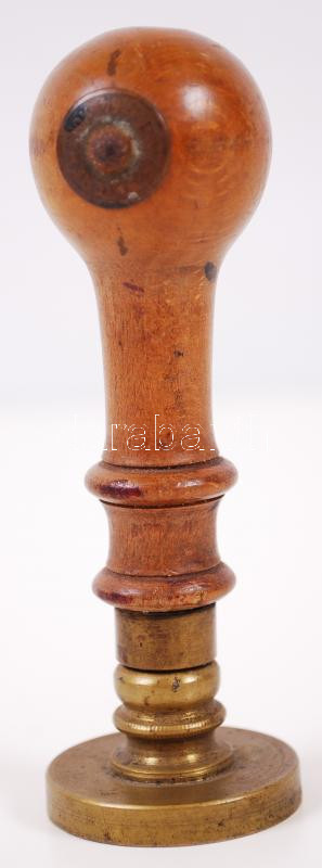 Beschreibung: 1900 "Pest-Pilis-Solt-Kiskun vármegye Gyömrő község 1900" feliratú, bronz pecsétnyomó fa nyéllel, "Bienenstok Rákóczi út 46" gyártói jelzéssel, 11cm