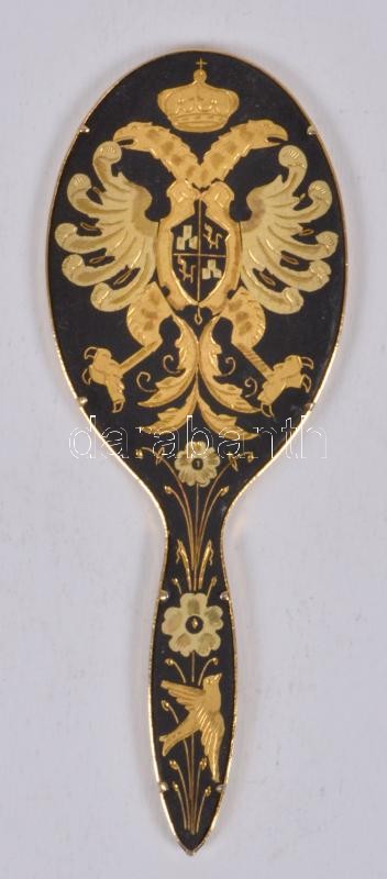 XX. század eleje: Osztrák címeres zsebtükör, gazdag berakásos díszítéssel /