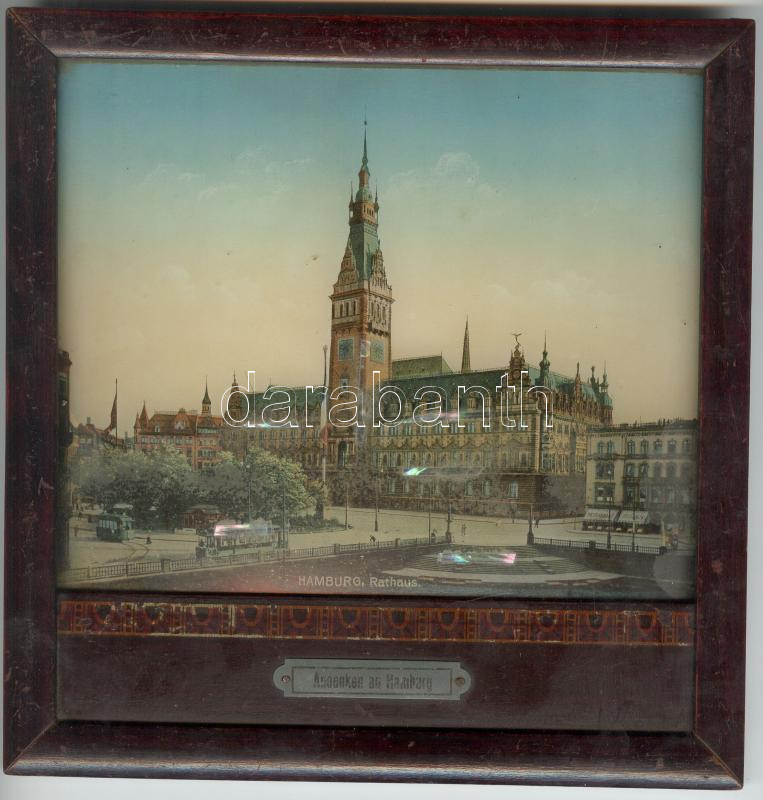 Beschreibung: cca 1900 Hamburg Rathaus, nyomat üvegezett keretben, 20x19,5cm