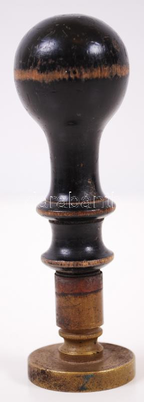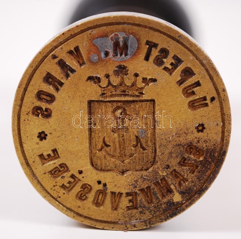 Beschreibung: cca 1900 "Újpest M. Város Számvevősége" feliratú, fanyelű, bronz pecsétnyomó Újpest címerével, 12cm