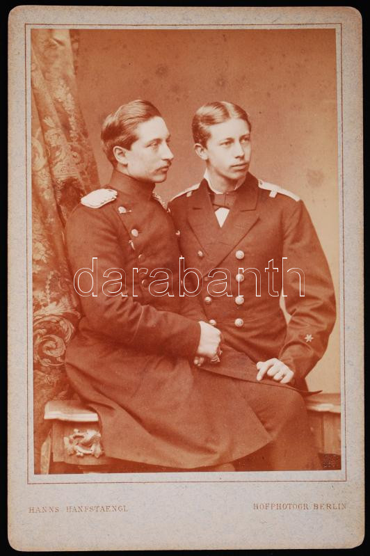 1881 A későbbi II. Vilmos porosz császár és Frigyes herceg, Hanns Hanfstaengl Hofphotogr. Berlin, keményhátú fénykép kabinetfotó méretben /
