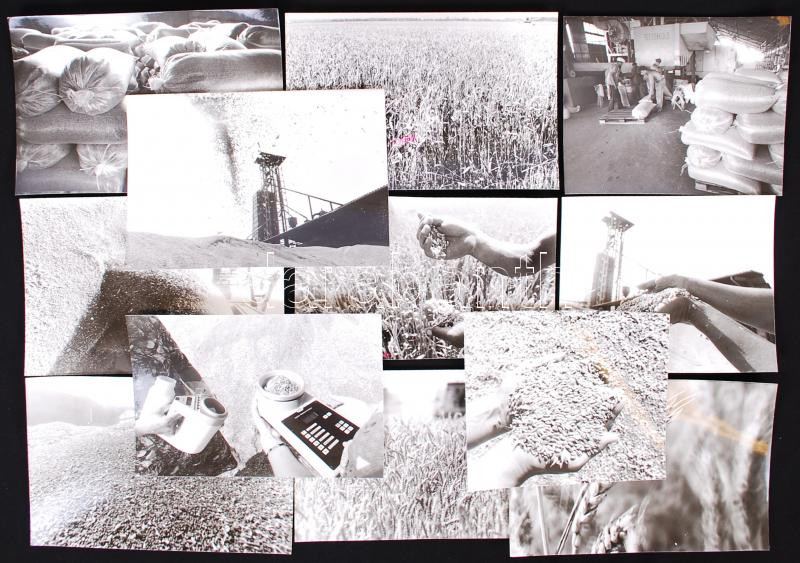 Beschreibung: cca 1980 12db fotó az új kenyérhez szükséges búza betakarításáról, 24x18cm