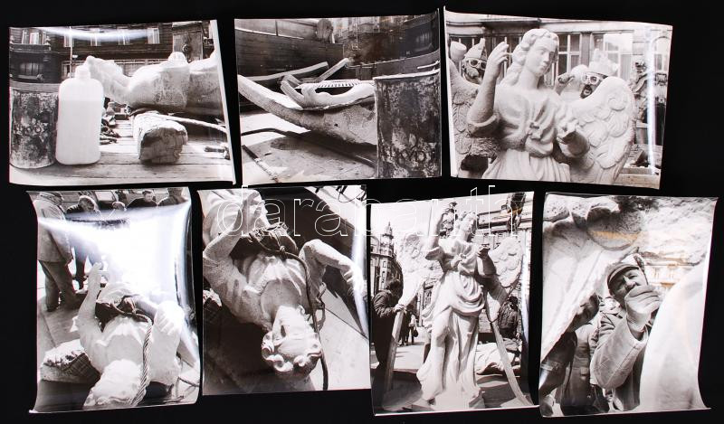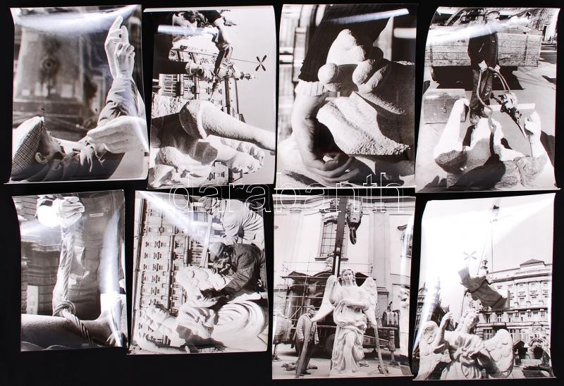 cca 1990 Müller Judit: 15db-os képriport a Ferenciek terén álló ferences templom homlokzati angyalszobrainak restaurálásáról, hátoldalon szerzői pecséttel jelzett