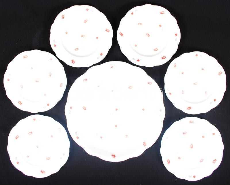 Beschreibung: Zsolnay virágos süteményes készlet, jelzett, egyik tányér sérült, matricás