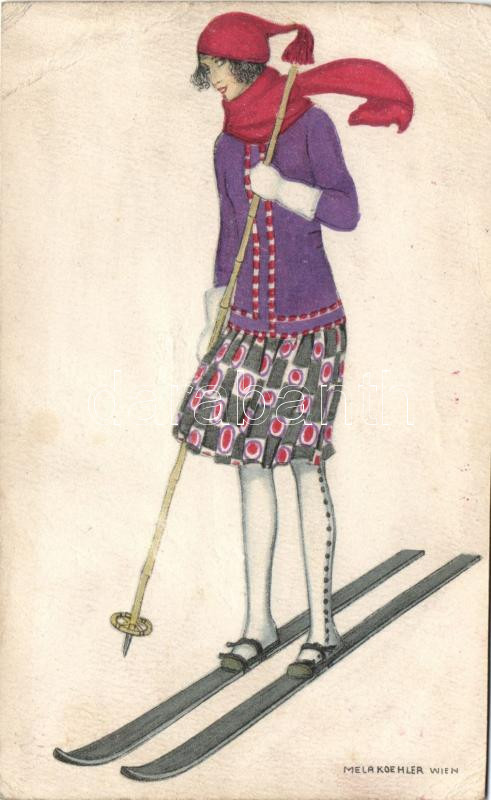 Lady, skiing s: Mela Koehler (fa) https://www.darabanth.com/de/185-Fernauktion/185.0/Ansichtskarten/Kunstlerkarten~3000098/Lady-skiing-s-Mela-Koehler-fa~II671096