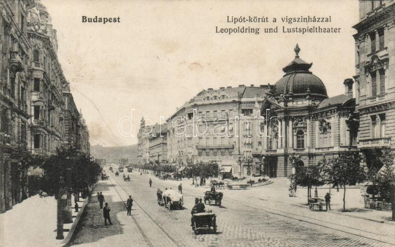 Budapest XIII. Lipót körút, Vígszínház, lovaskocsik https://www.darabanth.com/de/185-Fernauktion/185.0/Ansichtskarten/Ungarn~400005/Budapest-XIII-Lipot-korut-Vigszinhaz-lovaskocsik~II673173