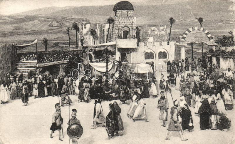 Mikófalva passiójáték, Jeruzsálem főtere https://www.darabanth.com/de/185-Fernauktion/185.0/Ansichtskarten/Ungarn~400005/Mikofalva-passiojatek-Jeruzsalem-fotere~II678704