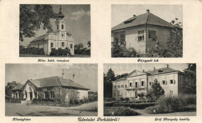 Perkáta Hunyady kastély, főjegyzői lak, községháza, katolikus templom ... https://www.darabanth.com/de/185-Fernauktion/185.0/Ansichtskarten/Ungarn~400005/Perkata-Hunyady-kastely-fojegyzoi-lak-kozseghaza-katolikus-templom-Rb~II672684