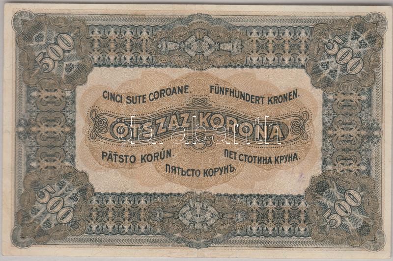 Beschreibung: 1920. 500K nyomat felfelé tolódva az alapnyomati keretben T:II,II-