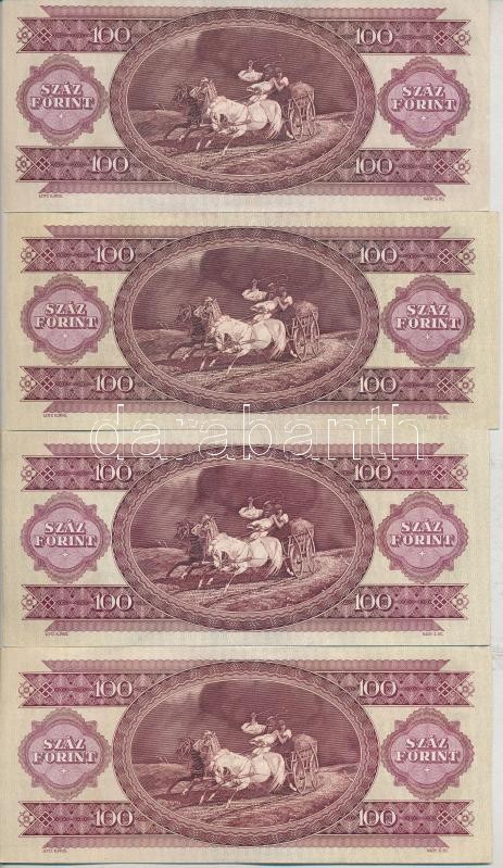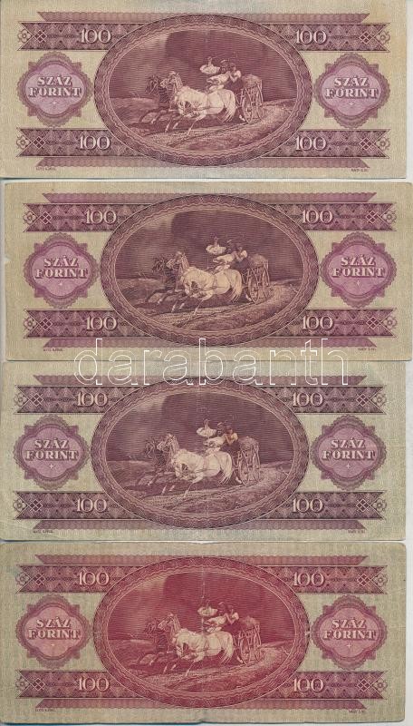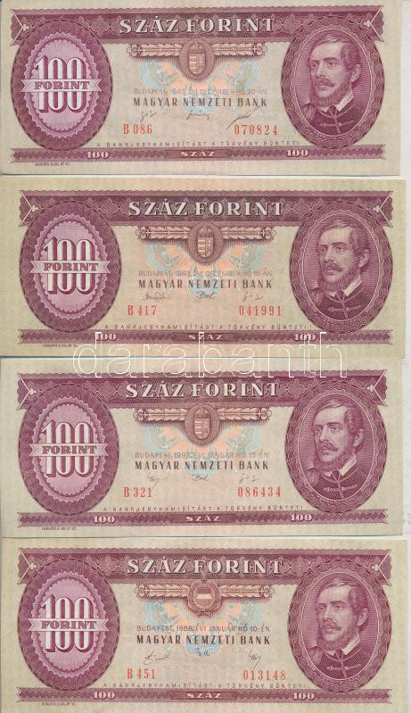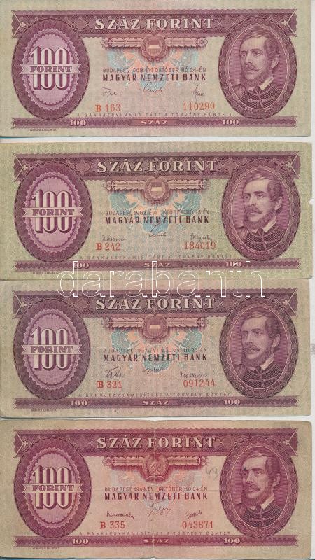 1949-57-62-68-89-92-93-95. 100Ft (8x) T:I-,II,III https://www.darabanth.com/de/185-Fernauktion/185.0/Numismatik/Ungarische-Banknoten~200007/1949-57-62-68-89-92-93-95-100Ft-8x-TI-II-III~II676058