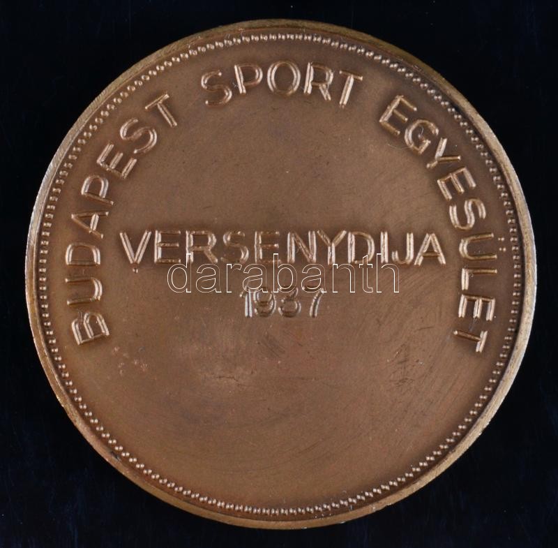 1937. "Budapest Sport Egyesület Versenydíja 1937." Br emlékérem (59mm) eredeti dísztokban miniatűr zománcozott jelvénnyel, tok: Hável Pál Budapest T:2