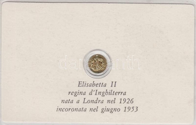 DN. "II. Erzsébet" modern mini Au pénz 0.333 minőségű T:BU Eredeti vák... https://www.darabanth.com/de/185-Fernauktion/185.0/Numismatik/Ungarische-und-Auslandische-Gold-Munzen~200010/DN-II-Erzsebet-modern-mini-Au-penz-0333-minosegu-TBU-Eredeti-vakuum-diszcsomagolasban~II673796
