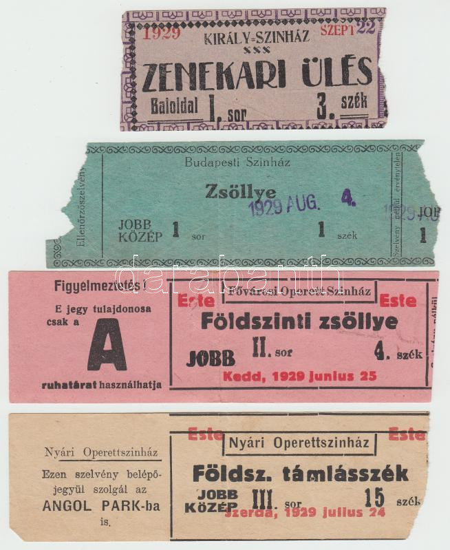 Beschreibung: 1929 4db budapesti mozijegy /