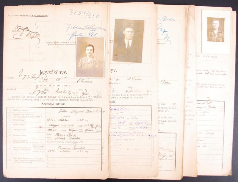Beschreibung: 1930-as évekből fényképes detektív-jegyzőkönyvek Újpestről