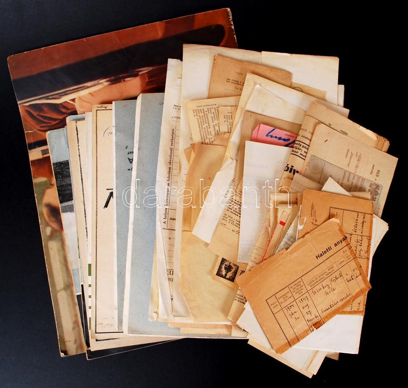 cca 1900-1950 Vegyes okmány és nyomtatványtétel: nagyrészt Nyíregyházán kiállított számlák, elismervények, okmányok, személyes iratok, valamint különféle építészeti és műszaki kiadványok, magazinok
