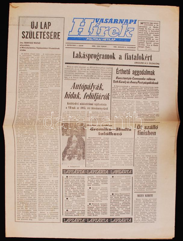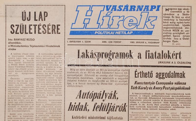 1985 Vasárnapi Hírek. Politikai hetilap. I/1. szám https://www.darabanth.com/de/186-Fernauktion/186.0/Andere-Sammelgebiete/Drucksachen~8000026/1985-Vasarnapi-Hirek-Politikai-hetilap-I1-szam~II682188