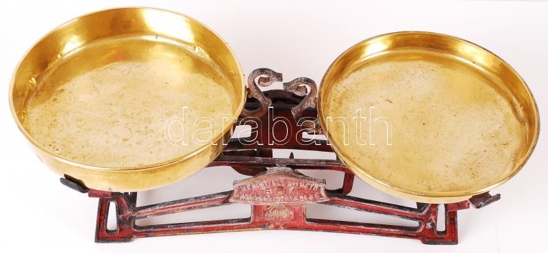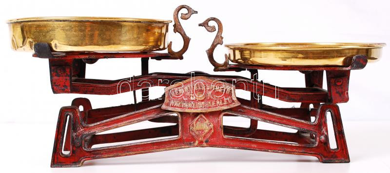 Cca 1930 Kobus háztartási mérleg, réz serpenyőkkel, h:37 cm, m:16 cm https://www.darabanth.com/de/186-Fernauktion/186.0/Andere-Sammelgebiete/Flohmarkt~680059/Cca-1930-Kobus-haztartasi-merleg-rez-serpenyokkel-h37-cm-m16-cm~II681106