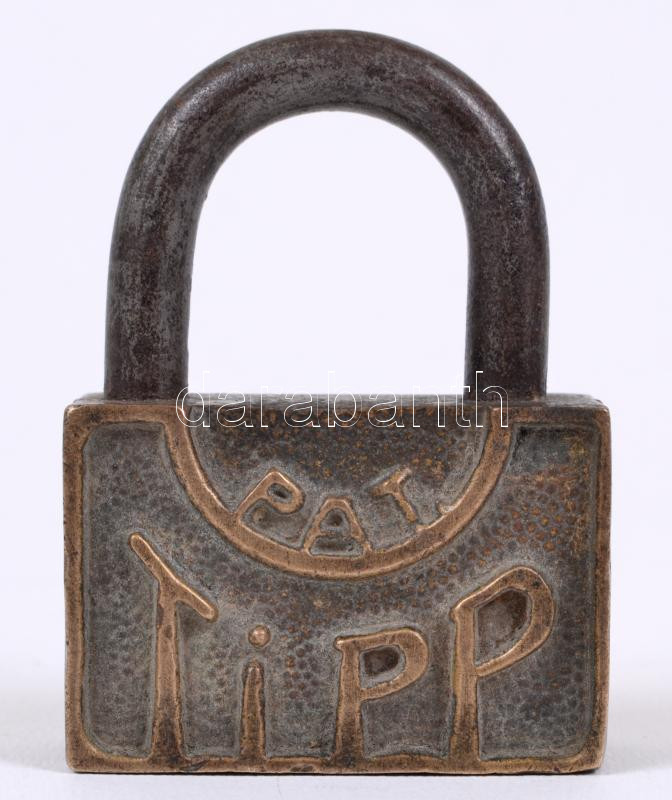 Beschreibung: cca 1920 "Tipp" sárgaréz lakat (kulcs nélkül) /