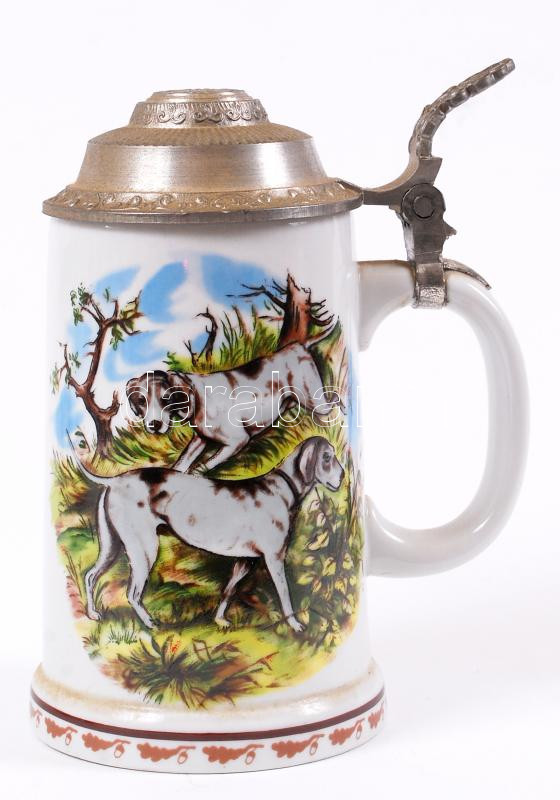 Beschreibung: Lichte német, porcelán vadász korsó, ón fedővel, jelzett, hibátlan, m:16 cm