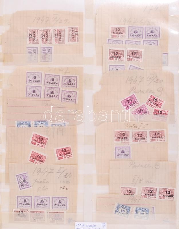100db magyar okmány és számlailleték bélyeg kivágásokon 1900-tól https://www.darabanth.com/de/186-Fernauktion/186.0/Andere-Sammelgebiete/Stempelmarken~680061/100db-magyar-okmany-es-szamlailletek-belyeg-kivagasokon-1900-tol~II682147
