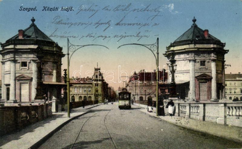 Szeged közúti hídfő, villamos https://www.darabanth.com/de/186-Fernauktion/186.0/Ansichtskarten/Ungarn~8000010/Szeged-kozuti-hidfo-villamos~II683055