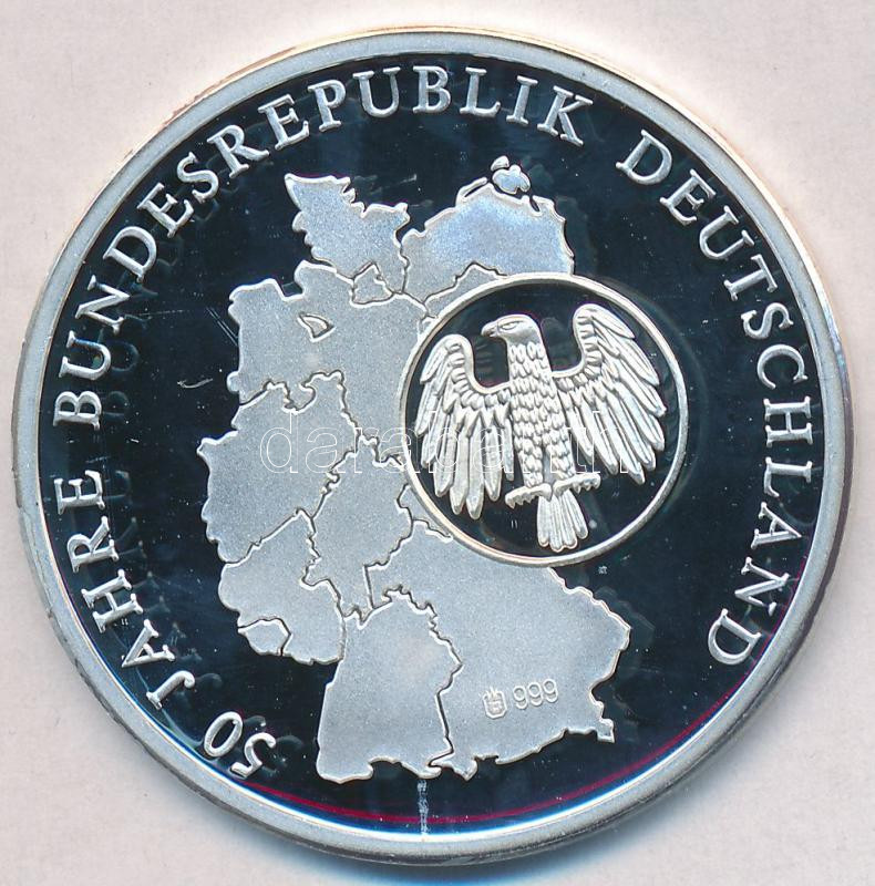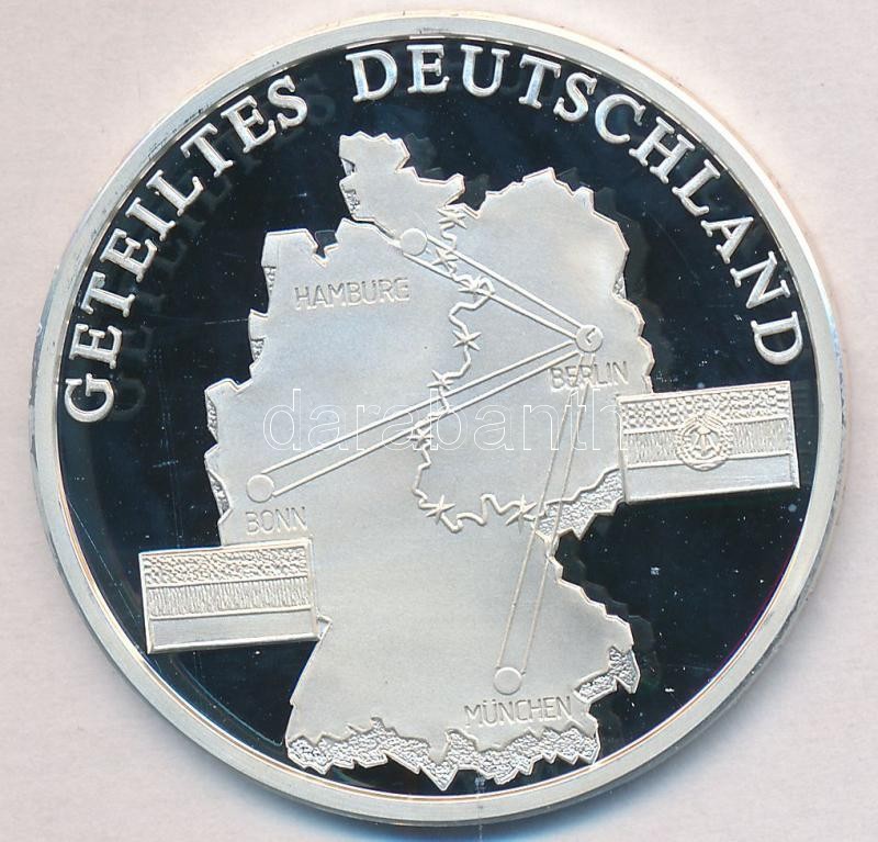 Németország 1993. "Német Szövetségi Köztársaság 50 éve - A kettéosztott Németország" Ag emlékérem (20g/0.999/40mm) sorszámozott tanúsítvánnyal T:PP