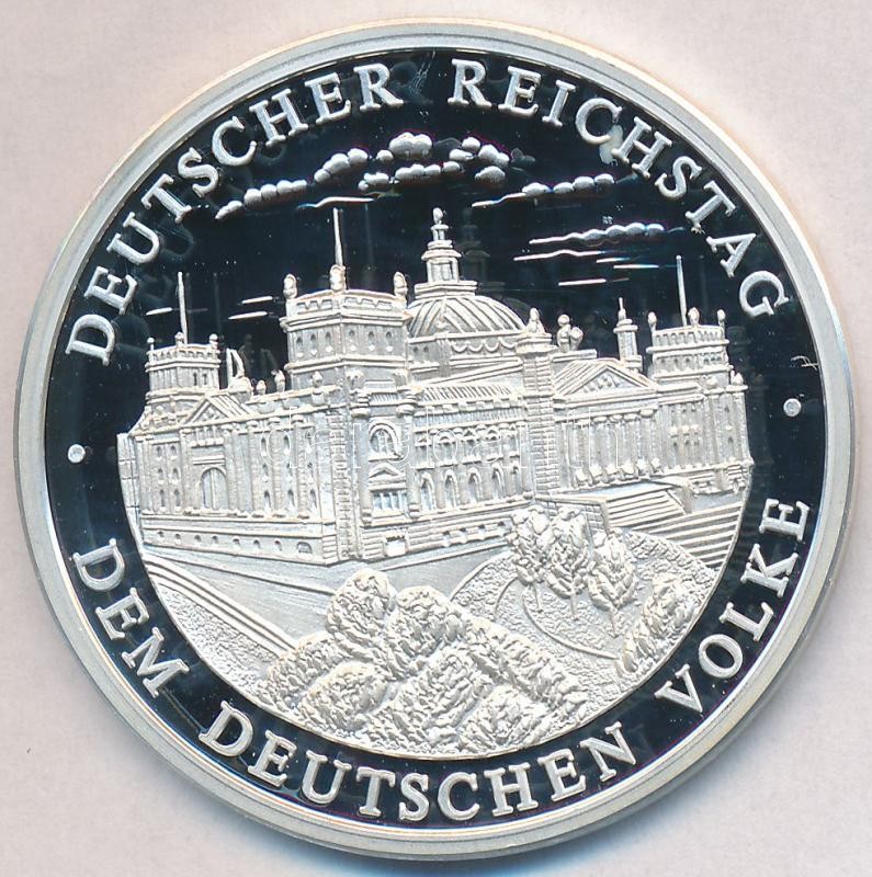 Germany 1993. "50 years of Federal Republic of Germany - Reichstag" Ag medallion (20g/0.999/40mm) with certificate C:PP