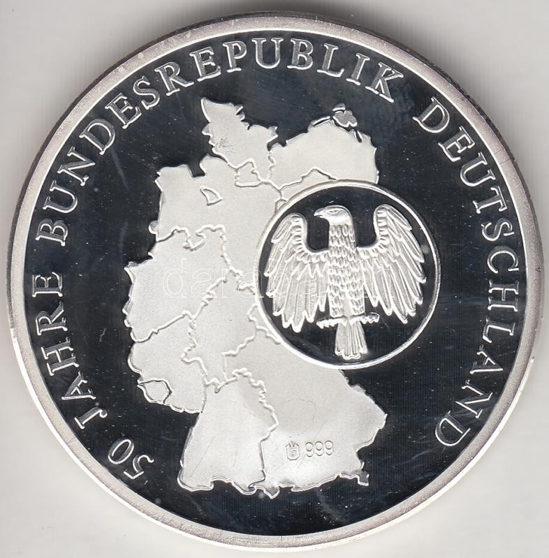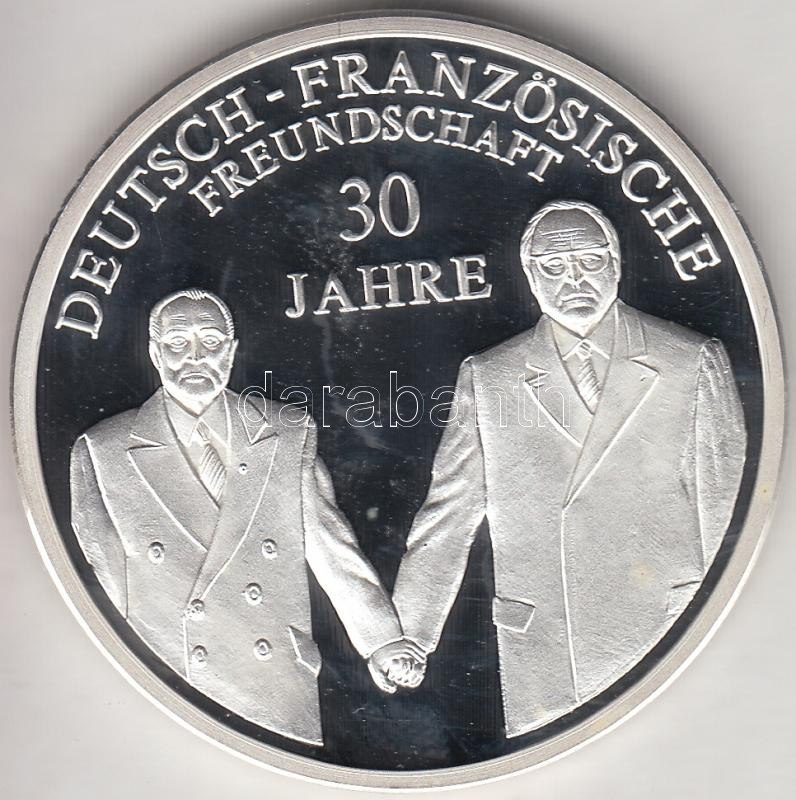 Németország 1994. "Német Szövetségi Köztársaság 50 éve - Német-Francia barátság 30 éves" Ag emlékérem (20g/0.999/40mm) sorszámozott tanúsítvánnyal T:PP