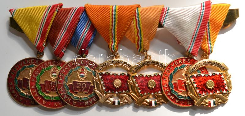 Beschreibung: 7db kitüntetés (együtt felfüggesztve): 1964.-1965. "Szolgálati Érdemérem" 10, 15, 20, 25 év után + 1964. "A Haza Szolgálatáért Érdemérem arany fokozata" (3x) T:1-,2