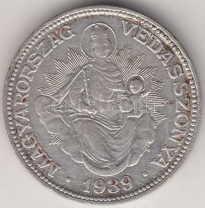 1939. 2P Ag "Madonna" T:2- https://www.darabanth.com/de/186-Fernauktion/186.0/Numismatik/Ungarische-Munzen~8/1939-2P-Ag-Madonna-T2-~II684243