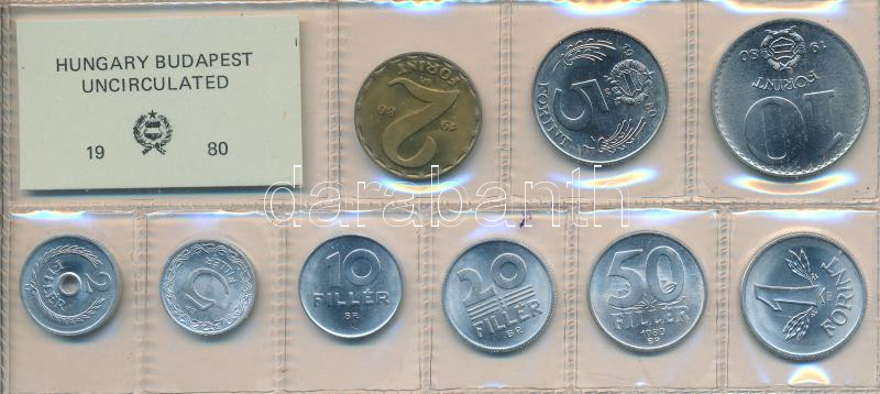 1980. 2f-10Ft 9db klf érmés forgalmi sor fóliatokban T:1 https://www.darabanth.com/de/186-Fernauktion/186.0/Numismatik/Ungarische-Munzen~8/1980-2f-10Ft-9db-klf-ermes-forgalmi-sor-foliatokban-T1~II682384