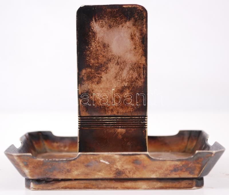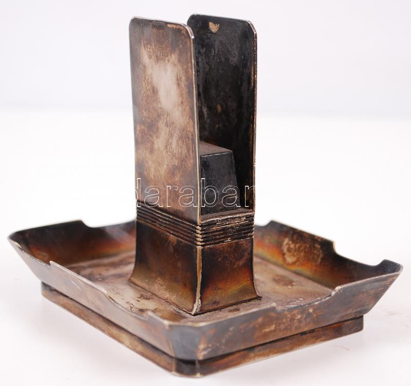 Beschreibung: cca 1900 Hacker és Társa ezüstözött gyufa- és hamutartó a New York kávéház címerével /